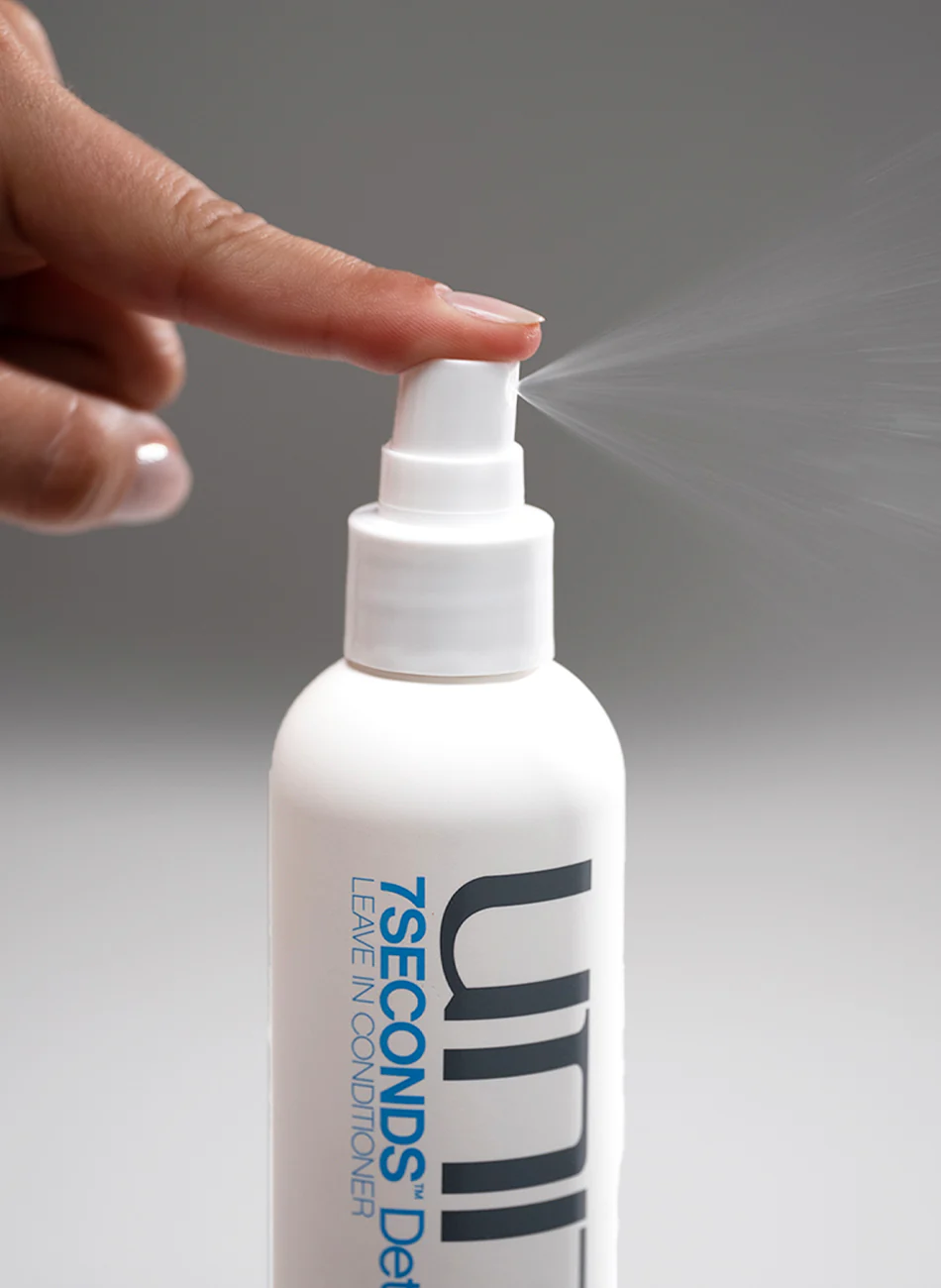 Cleanse and condition with any UNITE shampoo and conditioner, and towel dry. Then spray 7SECONDS Detangler on damp hair and gently comb to distribute through to ends. Do not rinse. Follow with favorite UNITE styling and finishing products.